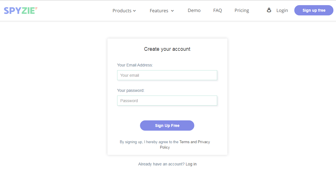 Step 1: Visit the Spyzie website and register an account using your email address and a password. After that, choose the Android robot and proceed to pay for one of the plans.